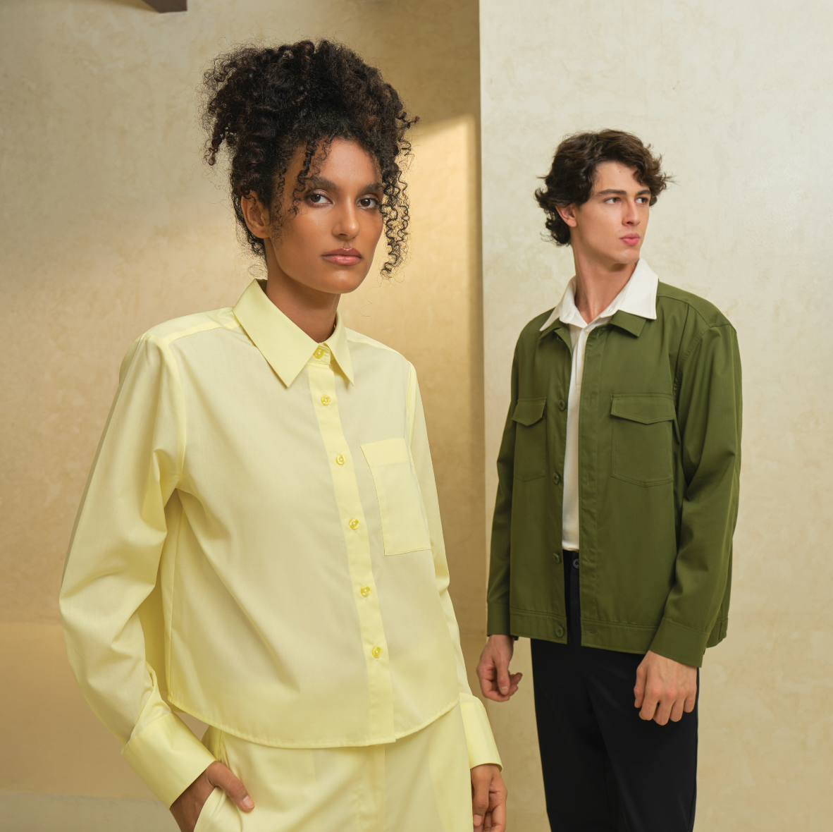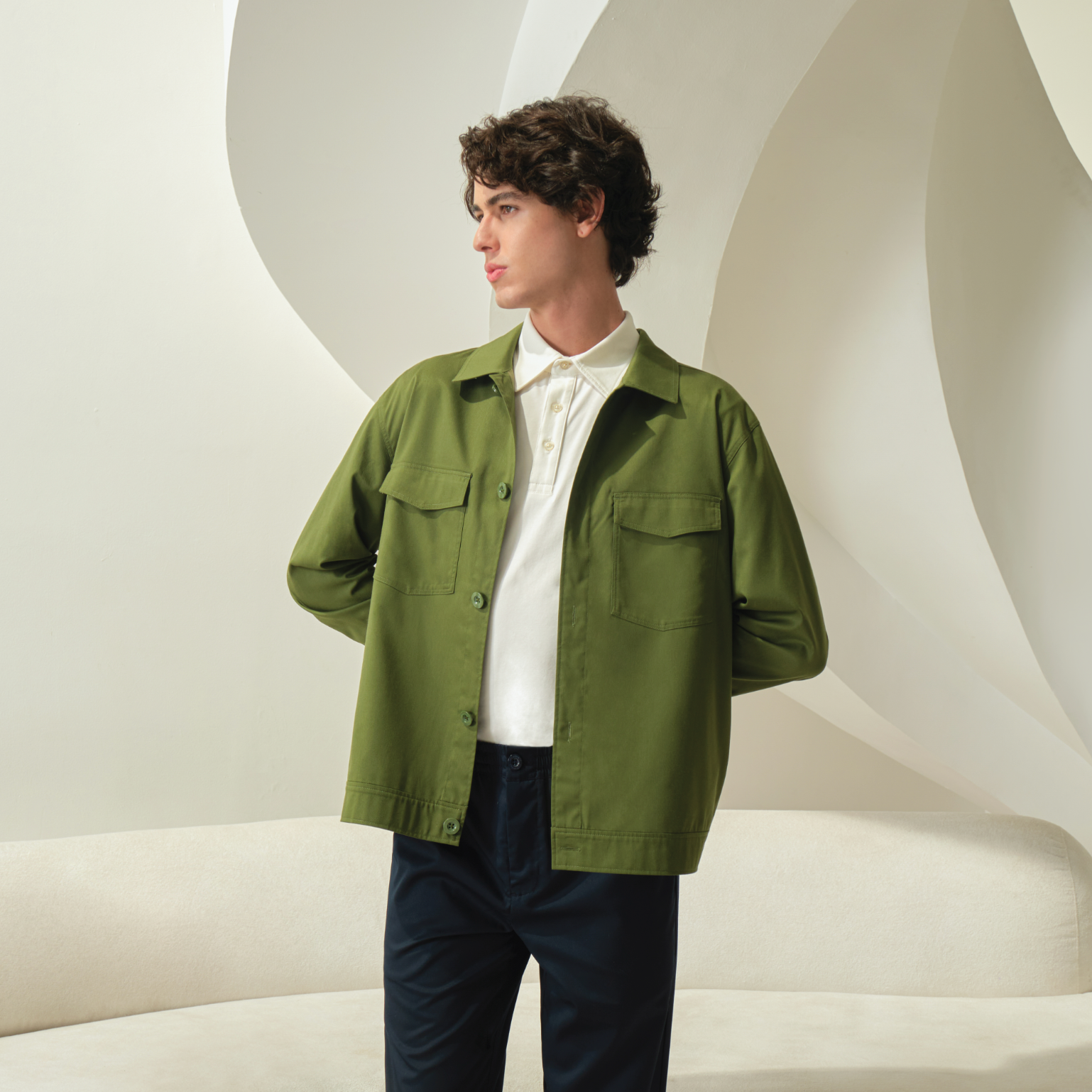 This season, MASSHIRO&Co. explores the contrast between structured boxy forms and fluid circular silhouettes, reimagining balance in modern dressing. The thoughtful interplay between casual and crispness captured in harmonious blend, introducing breathability through movement.